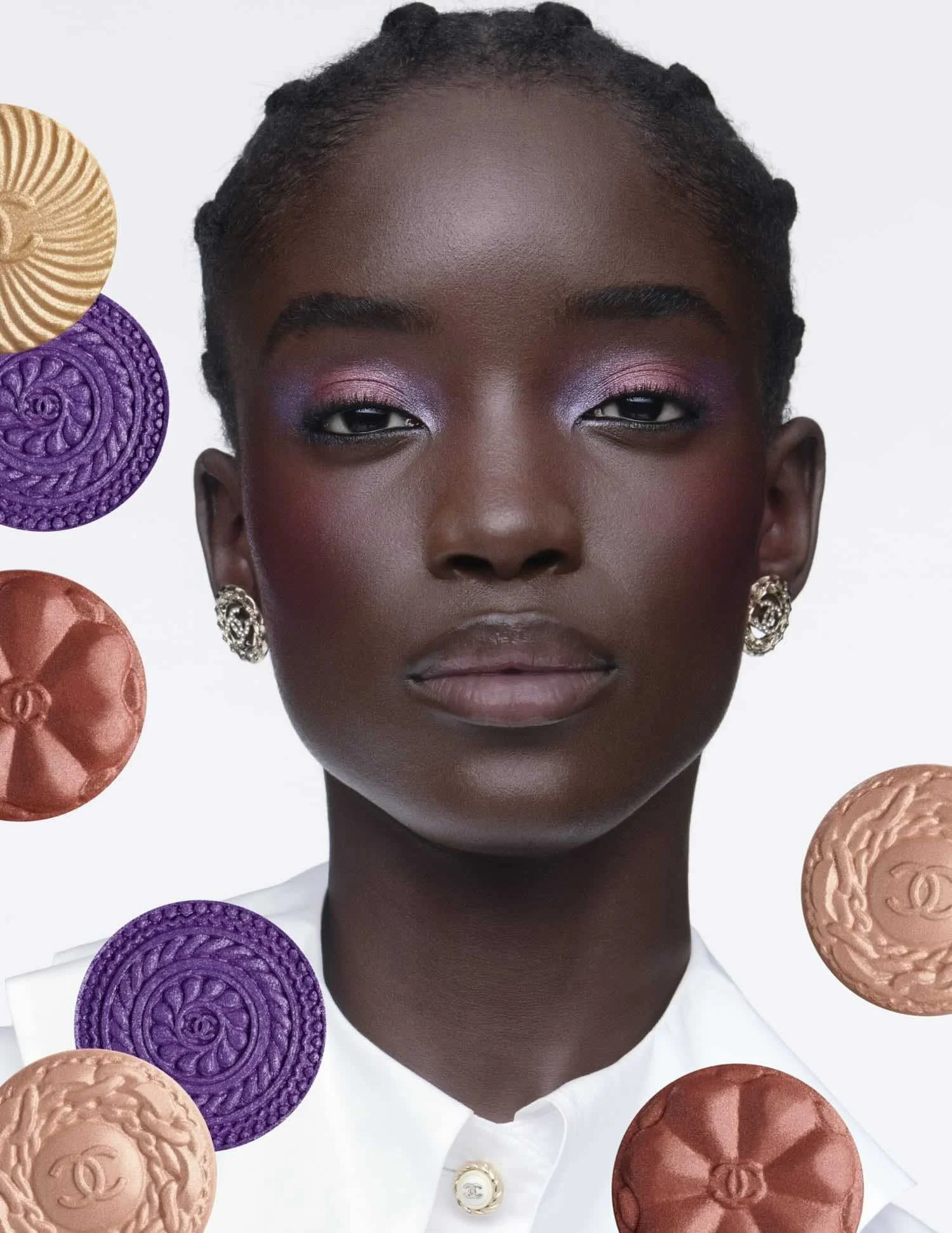 The palette bridges the house’s two worlds — beauty and fashion — through shared codes of texture, structure, and emotion. The buttons link back to Gabrielle Chanel’s design legacy, while the artistry of the Comètes Collective translates that legacy into pigment and light.