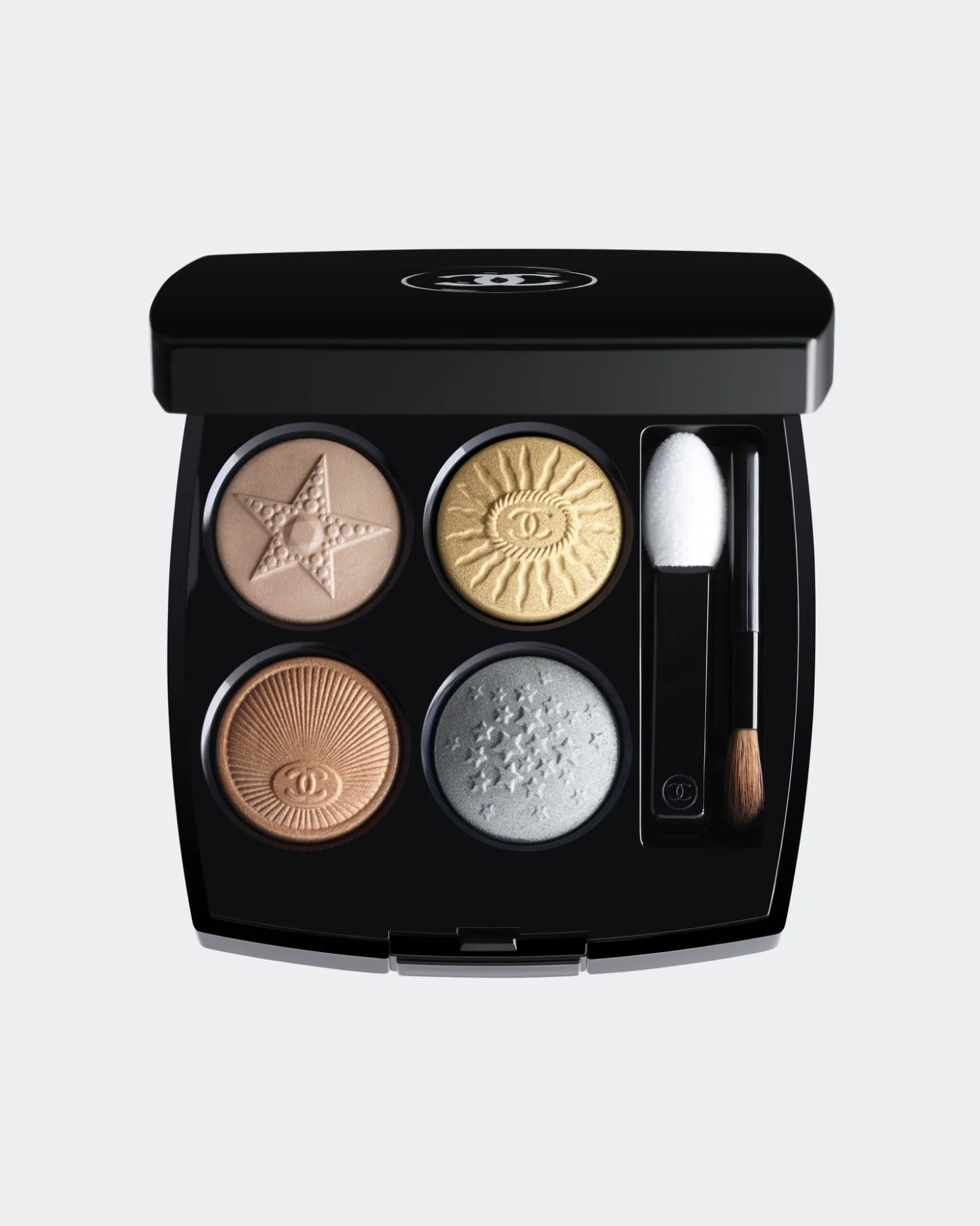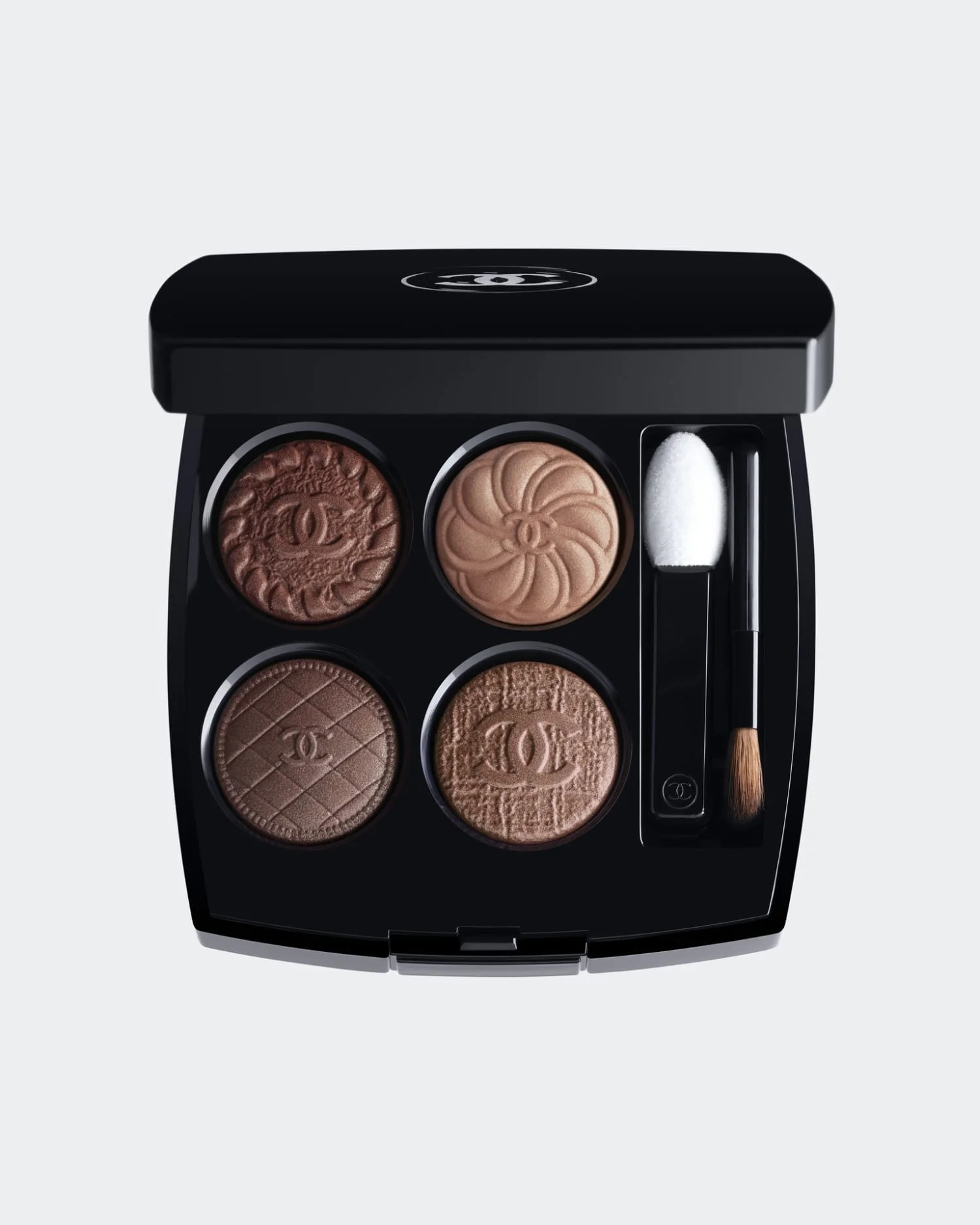 The Les 4 Ombres Boutons palette pays homage to Chanel’s couture heritage, with each compact embossed to resemble the house’s signature buttons — those found on its iconic tweed jackets. The design is tactile, deliberate, and beautifully restrained, echoing the maison’s belief that every detail should carry meaning.