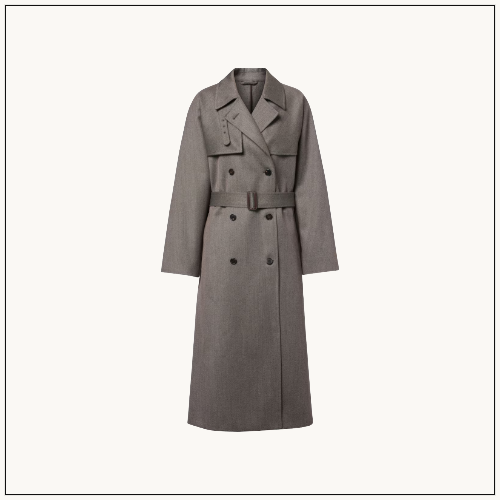 The Row’s Rhydian trench coat reimagines a classic with oversized proportions, virgin wool gabardine, and spacious side pockets.