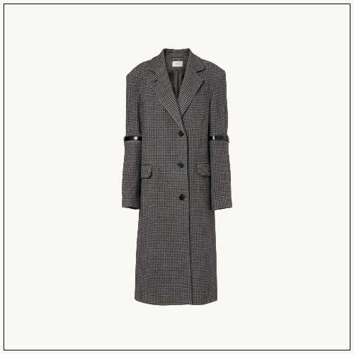 Coperni’s houndstooth wool and cashmere coat fuses precision and edge with leather-buckled sleeves and a straight-fit cut.