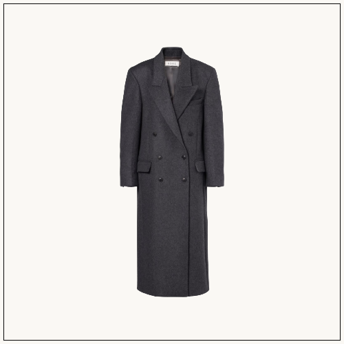 Toteme’s double-faced wool and cashmere coat embodies modern uniform dressing with its oversized, softly structured silhouette.